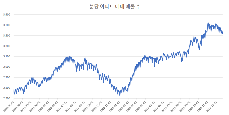 이제 분당구 아파트 매물 수 변화를 확인하겠습니다.