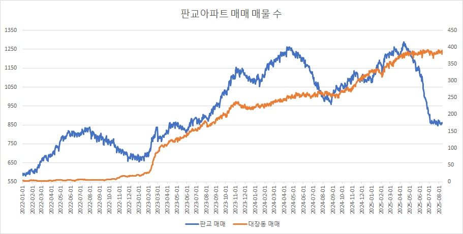 대장동아파트 매매 매물 수는 최근 3주 연속 증가 중이었으나, 이번 주에는 감소했습니다.
