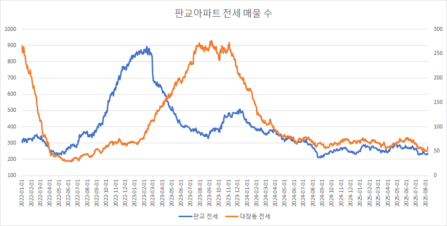 판교아파트 전세 매물 수는 2주 연속 증가하고 있습니다.