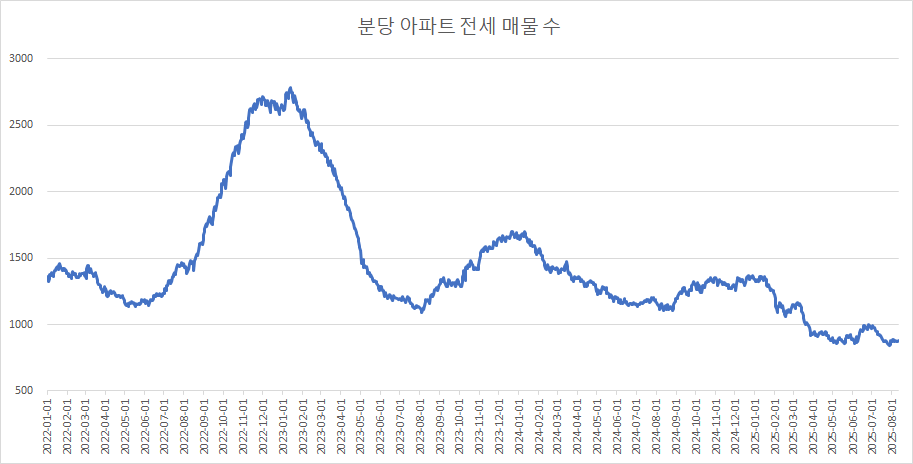 먼저 분당구아파트 매매 매물 수 변화를 확인하겠습니다.