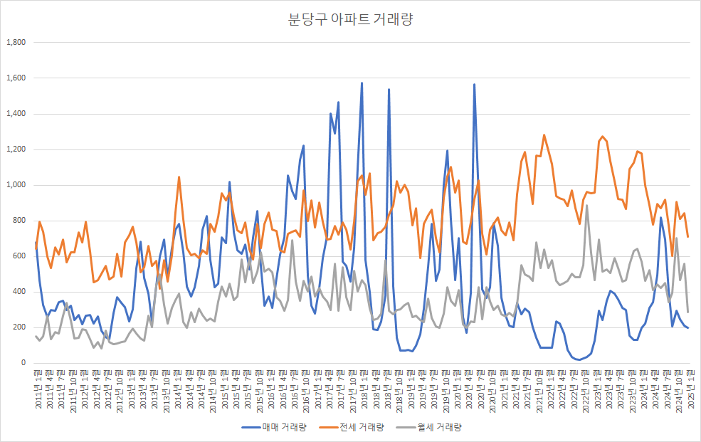 다음은 분당구아파트 전세 매물 수 변화를 확인하겠습니다.
