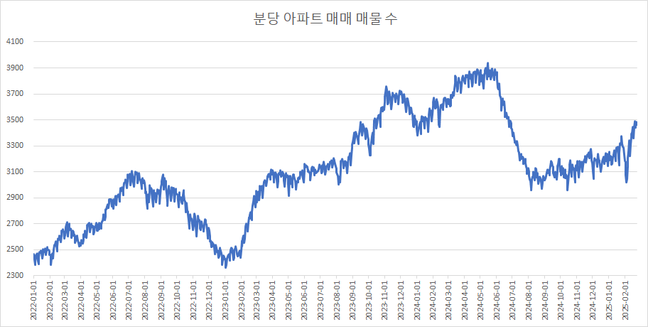 이제 분당구아파트 매물 수 변화를 확인하겠습니다.