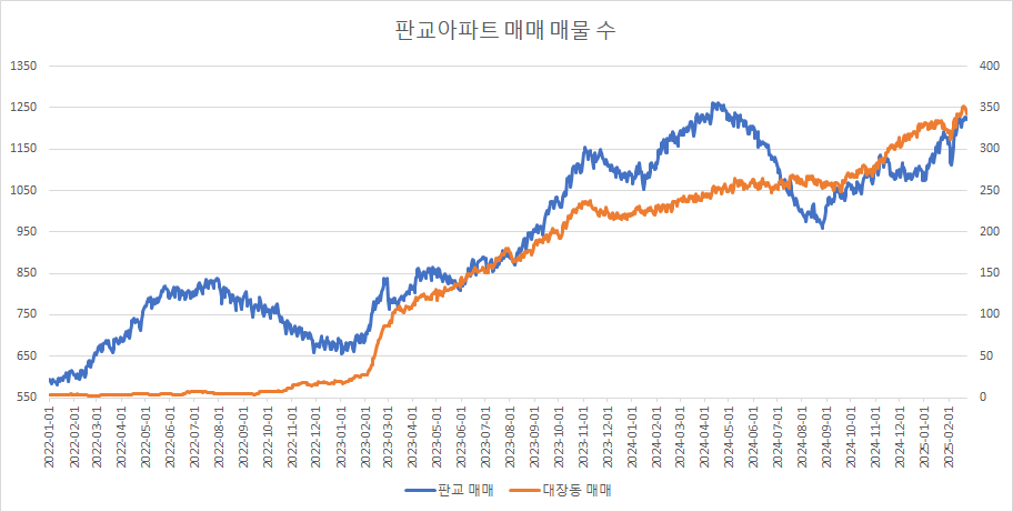 대장동아파트 매매 매물 수는 최근 2주 연속 증가하고 있었으나, 이번 주에는 감소로 돌아 섰습니다.