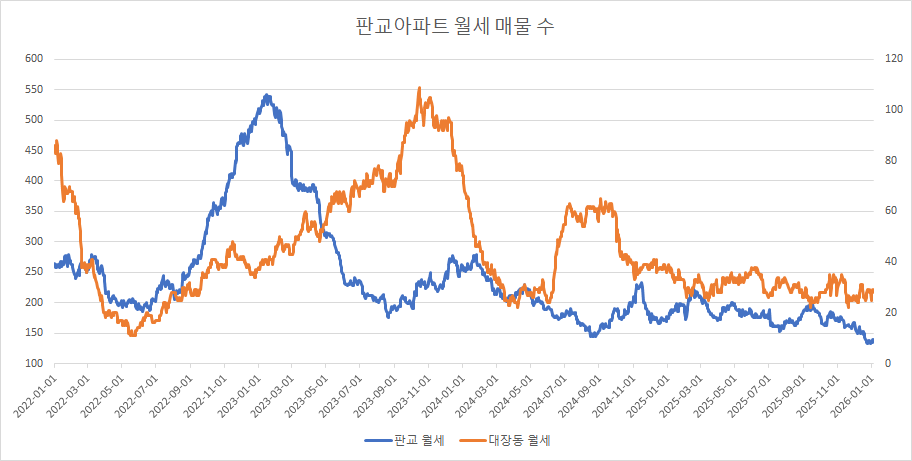 대장동아파트 월세 매물 수는 지난주 대비 보합을 유지했습니다.