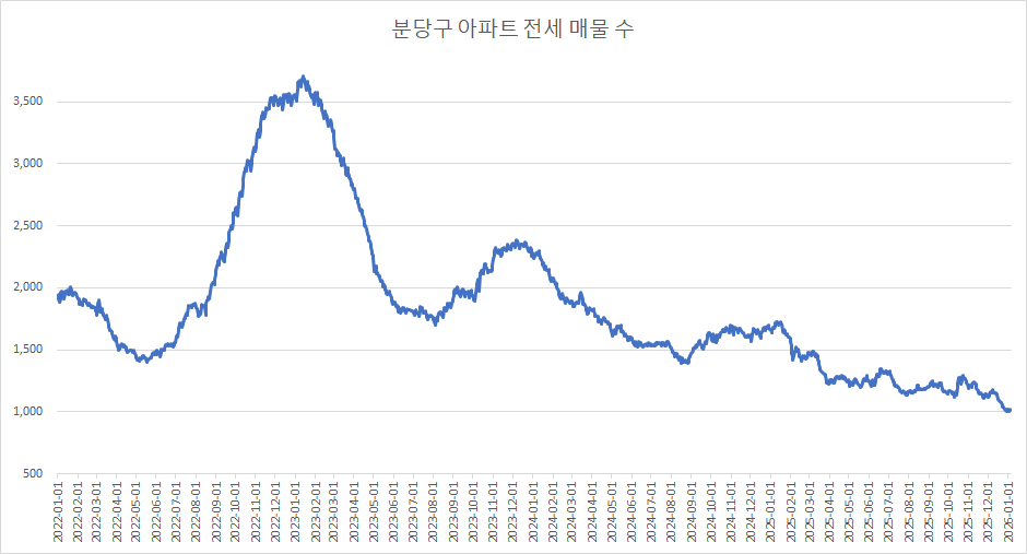 다음은 분당구아파트 전세 매물 수 변화를 확인하겠습니다.