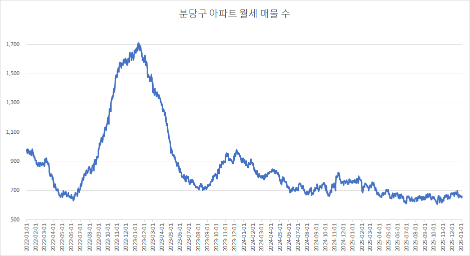 이제 분당구아파트 매물 수 변화를 확인하겠습니다.