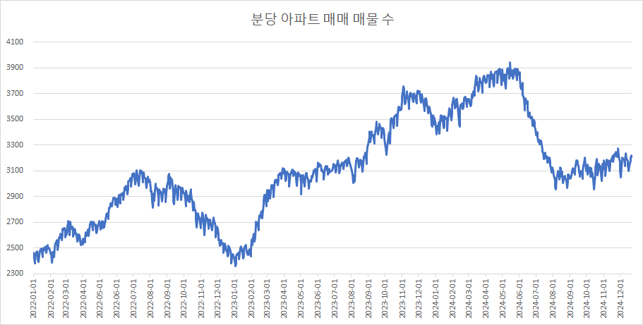 이제 분당구아파트 매물 수 변화를 확인하겠습니다.