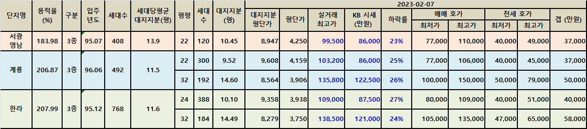 | 무지개마을 아파트 급매 정리 202302 (0) | 2023.02.02 |