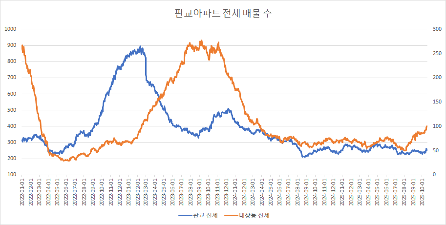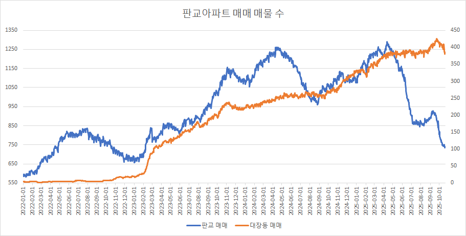 대장동아파트 매매 매물 수는 3주 연속 감소했습니다.
