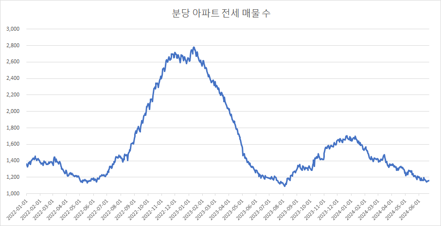다음은 분당구아파트 전세 매물 수 변화입니다.