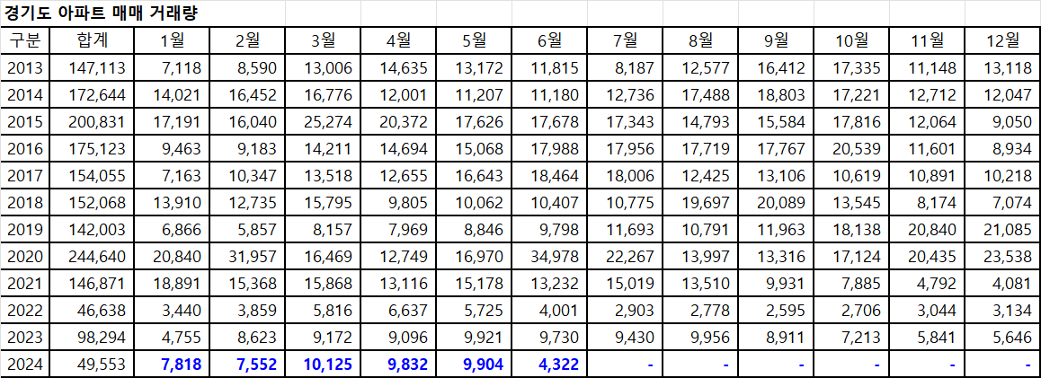 6월 경기도아파트 매매 거래량은 현재 4,322건입니다.
