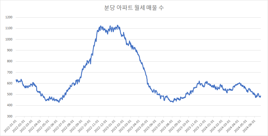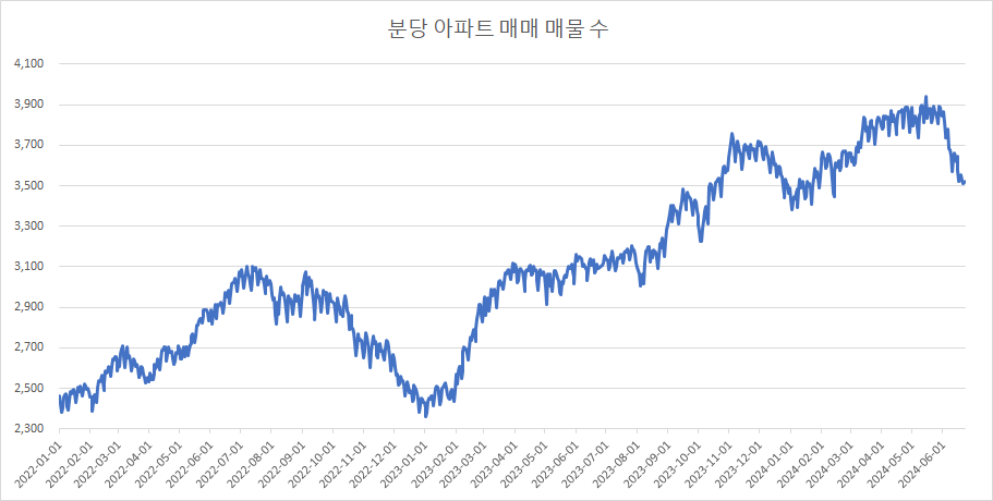 이제 분당구아파트 매물 수 변화를 확인하겠습니다.