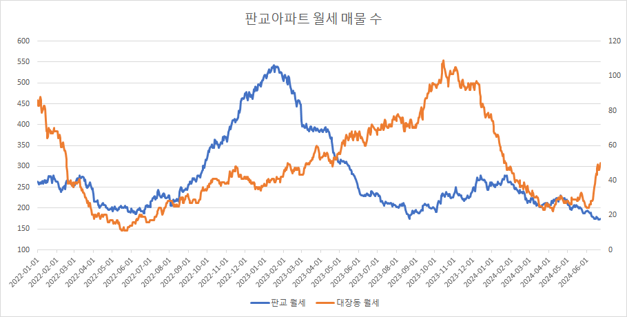 대장동아파트 월세 매물 수는 3주 연속 급증하고 있습니다.