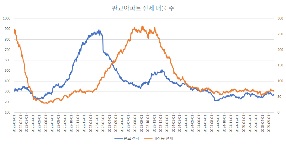 대장동아파트 전세 매물 수는 지난주 대비 보합입니다.