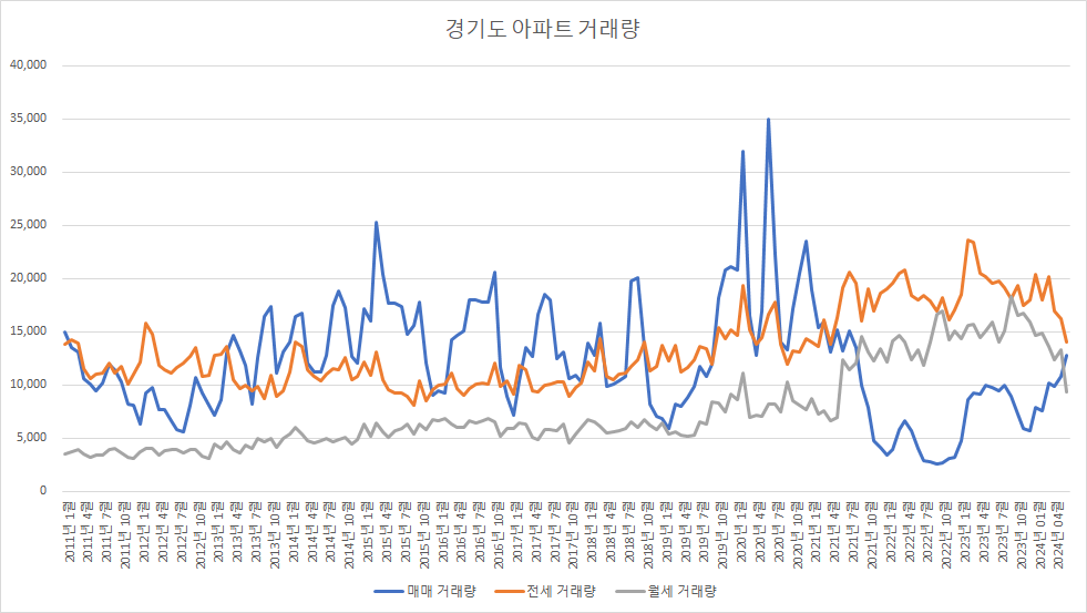 아래 표는 경기도아파트 매매 거래량입니다.
