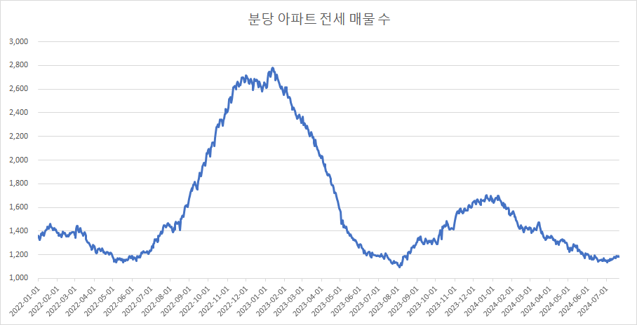다음은 분당구아파트 전세 매물 수 변화를 확인하겠습니다.