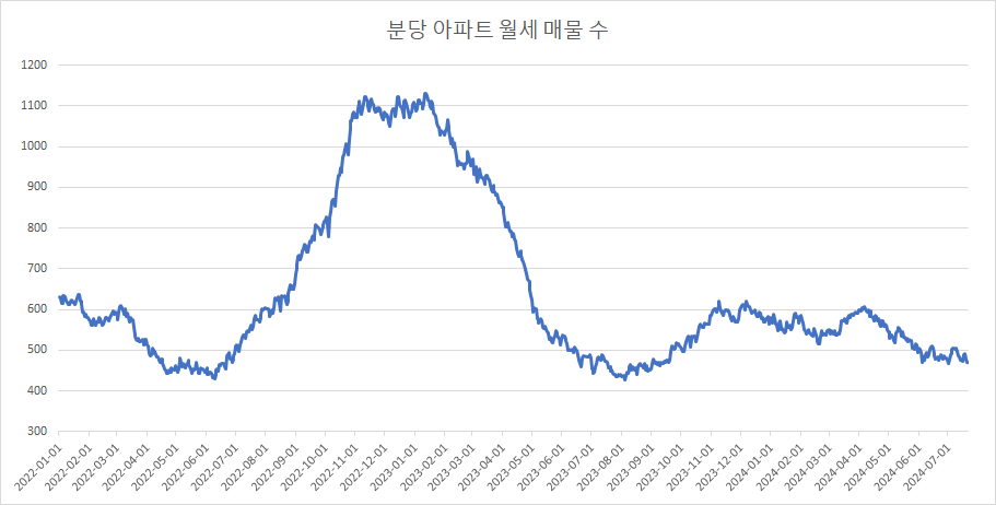 마지막으로, 분당구아파트 월세 매물 수 변화를 확인하겠습니다.