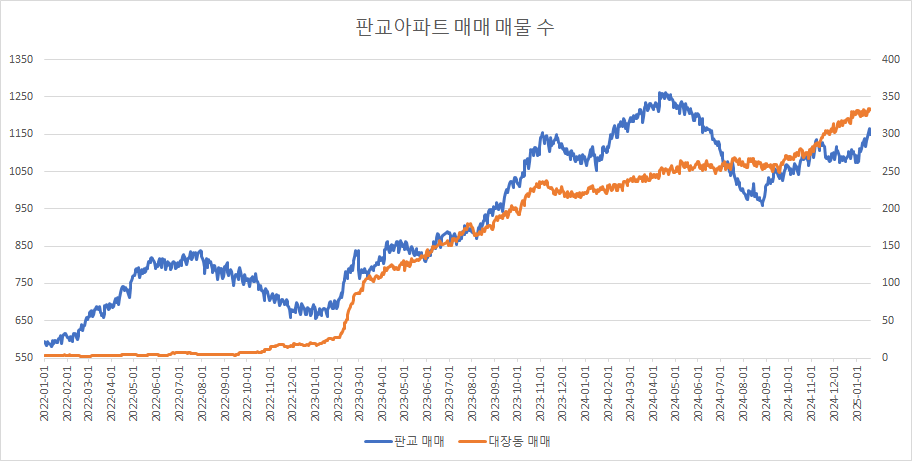 대장동아파트 매매 매물 수는 2주 연속 증가하고 있습니다.