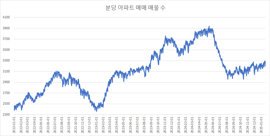 이제 분당구아파트 매물 수 변화를 확인하겠습니다.