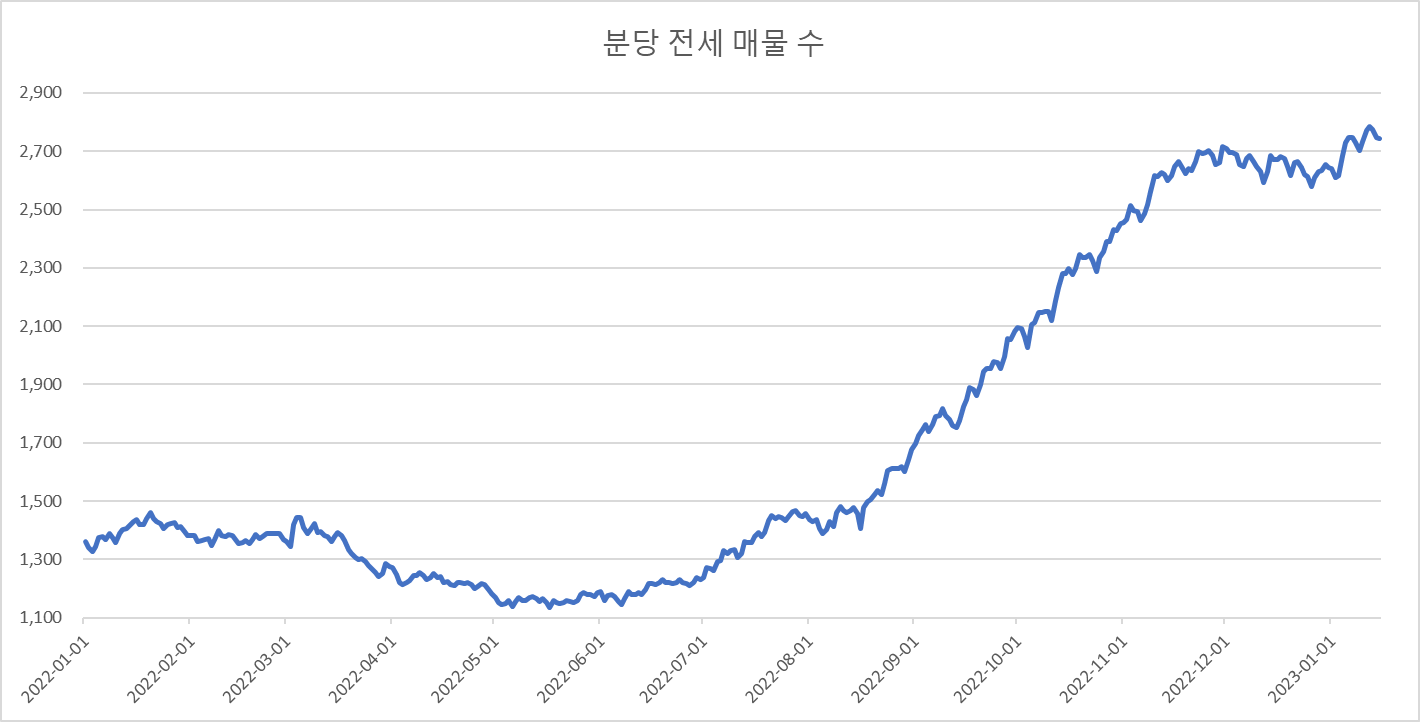 다음은 분당아파트 전세 매물 수 변화입니다.