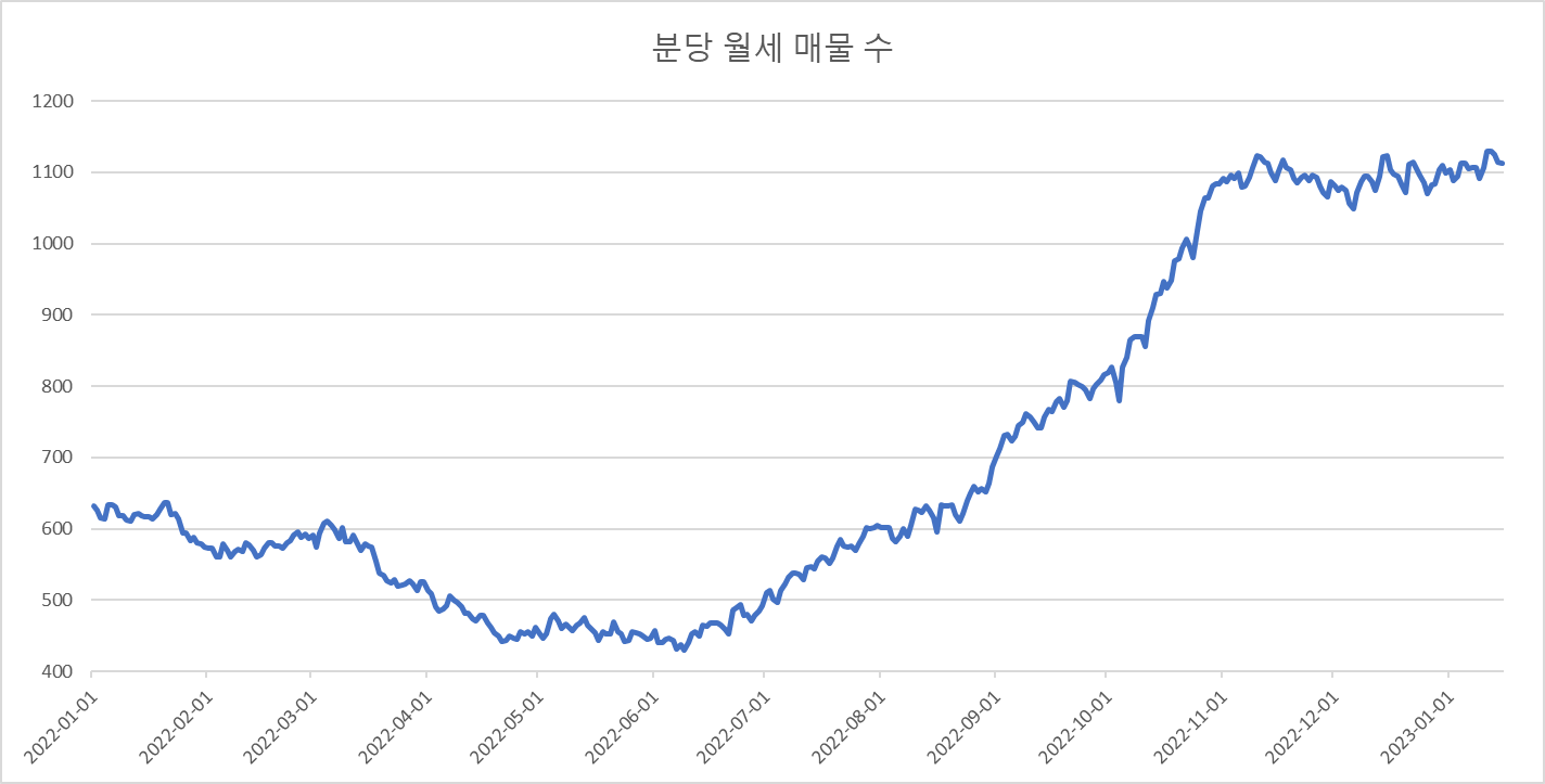| 분당아파트 매물 수 변화 2023년01월 (0) | 2023.01.29 |