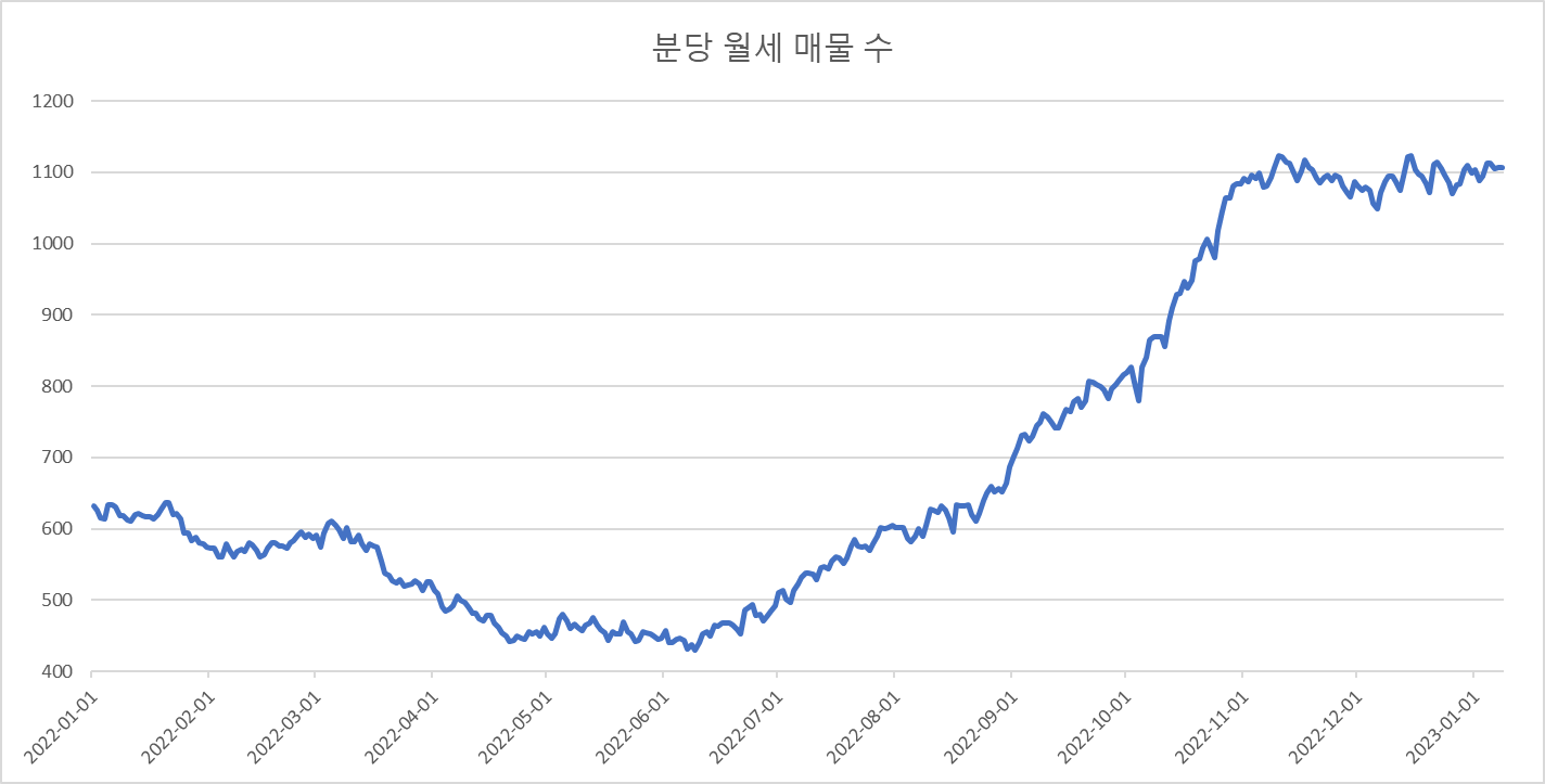 다음은 분당아파트 전세 매물 수 변화를 확인해 보겠습니다.