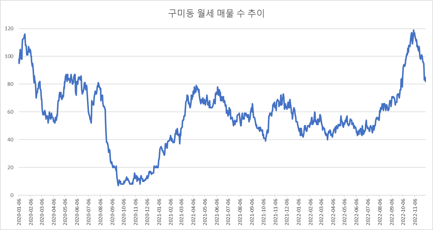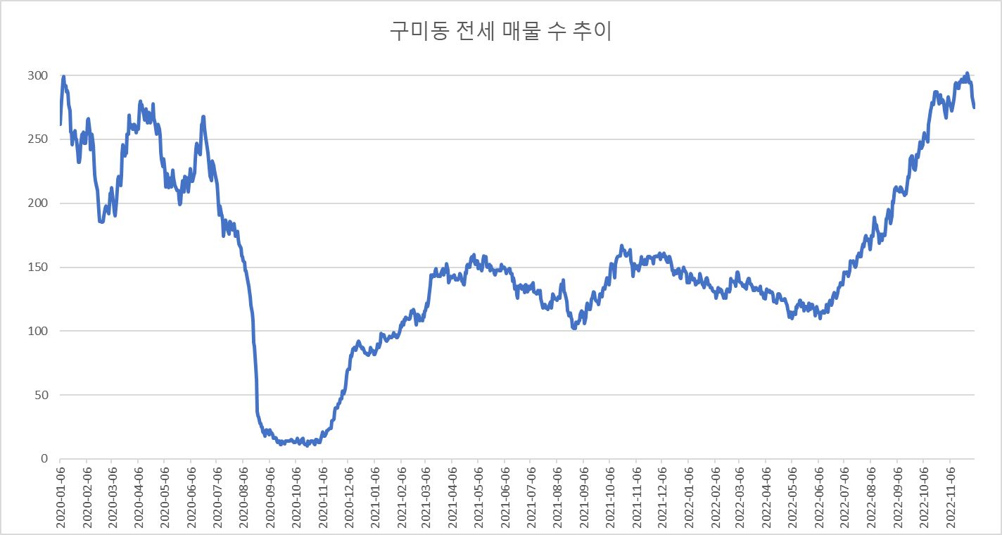 아래는 분당구 구미동 아파트 전세 매물 수의 변화를 그린 것입니다.