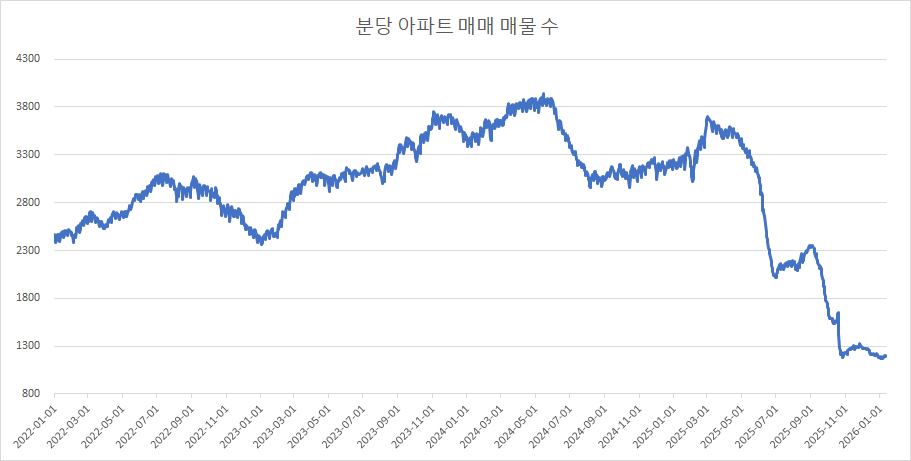 이제 분당구아파트 매물 수 변화를 확인하겠습니다.