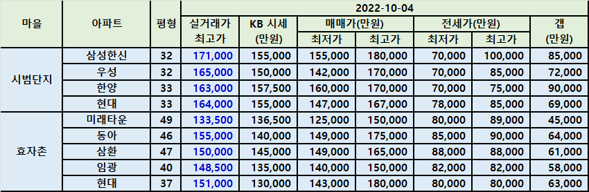 그러나 서현동 효자촌 마을의 매매가는 아직도 하락을 하고 있습니다.