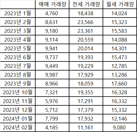 | 매매 거래량 급증 과 전월세 거래량 감소 (0) | 2024.02.11 |