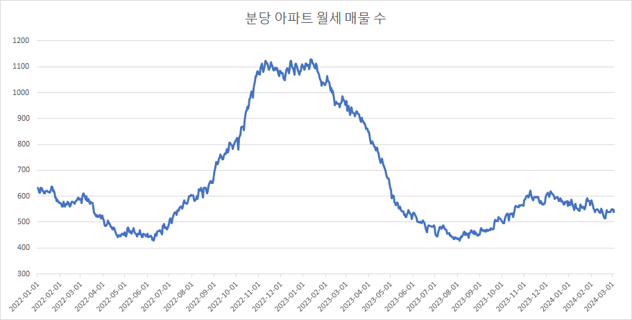 이제 분당구 아파트 매물 수 변화를 확인하겠습니다.