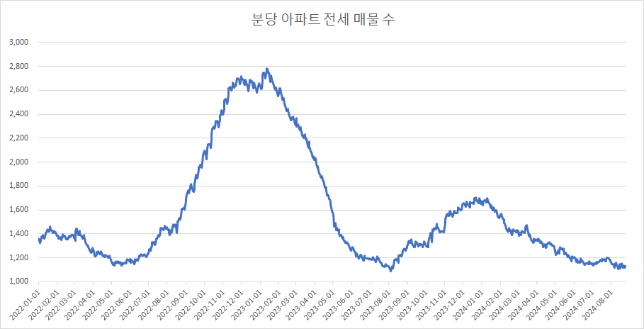 다음은 분당구아파트 전세 매물 수 변화를 확인하겠습니다.