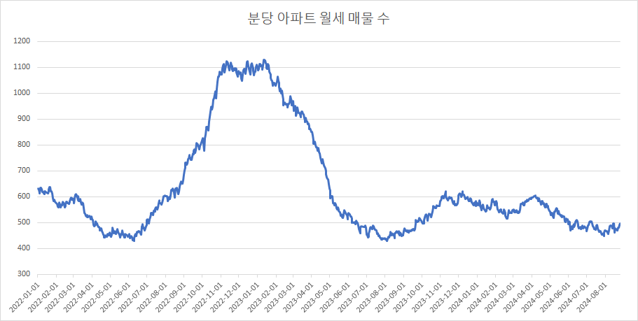 마지막으로, 분당구아파트 월세 매물 수 변화를 확인하겠습니다.